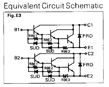 2DI150MA-120 absolute maximum ratings: (1)VCBO: 600V; (2)VCEO: 600V; (3)VEBO: 10V; (4)IC: 150A; (5)ICP: 300A; (6)-IC: 150A; (7)IB: 9A; (8)IBP: 18A; (9)PC: one transistor: 690W, two transistors: 1380W; (10)Tj: +150℃; (11)Tstg: -40℃ to +125℃; (12)m: 450g; (13)Viso: 2500V;(14)VCEO(SUS): 450V.